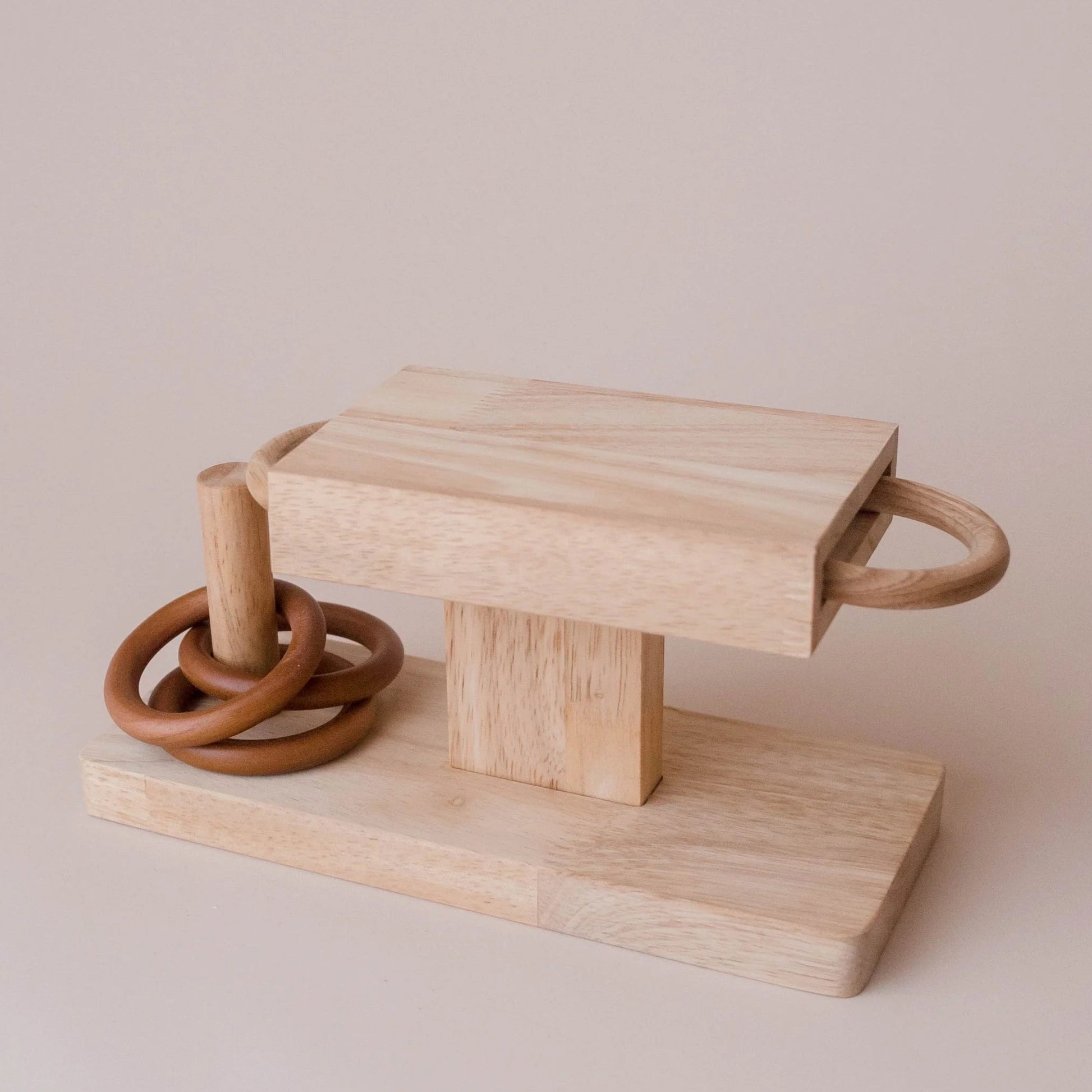 Invite inquisitive tamariki to practise precision, persistence and problem solving with this beautifully crafted Wooden Montessori rings posting activity from Qtoys.